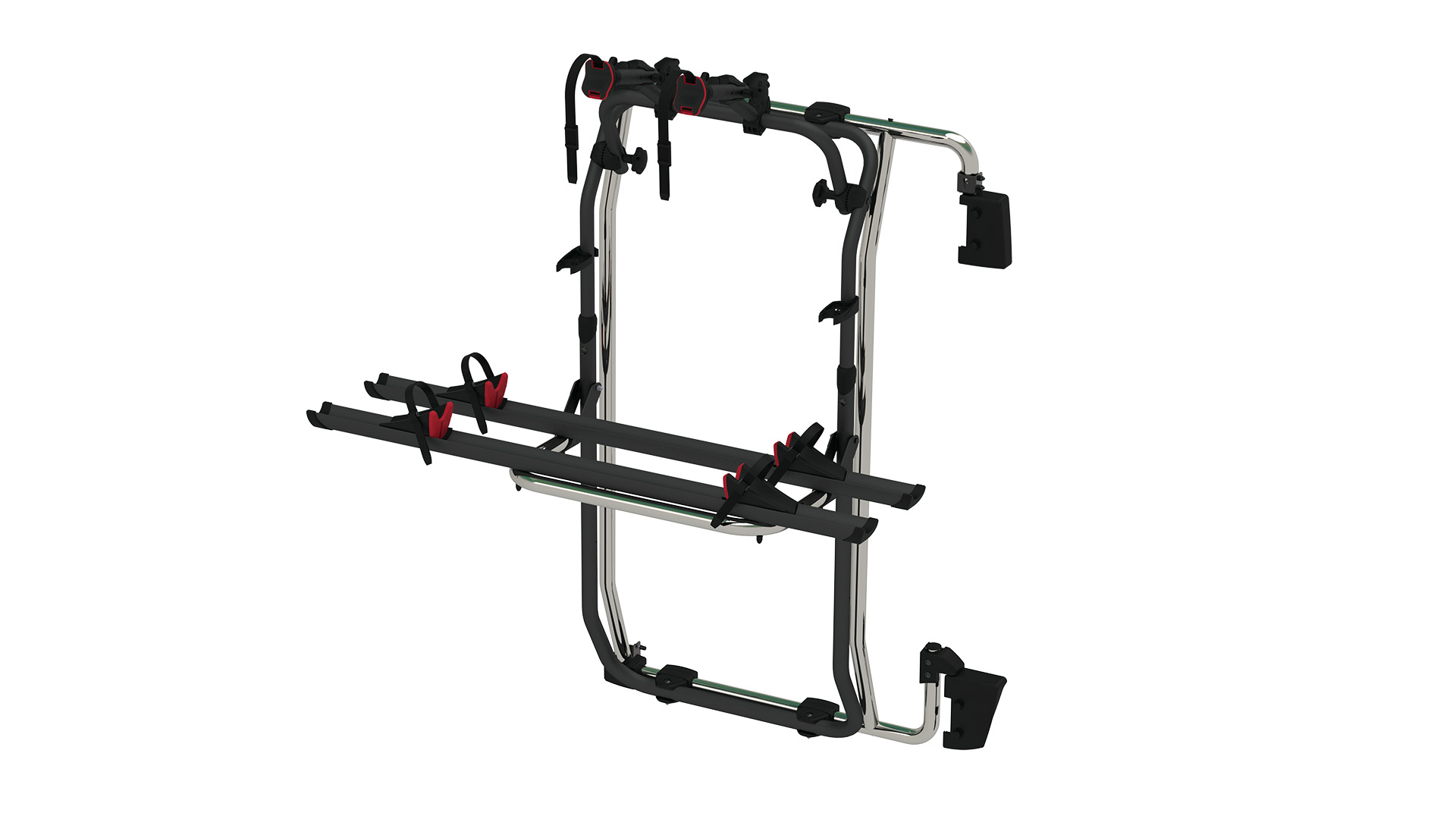 ProMaster version allow the rail support base to be mounted in three positions to facilitate the loading of the bikes. In the intermediate and lowered positions it is necessary to use the licence plate holder bar with lighting group Licence Plate Carrier. r.