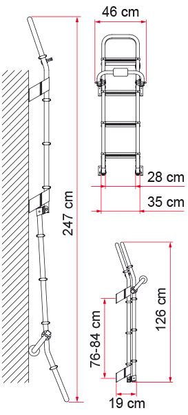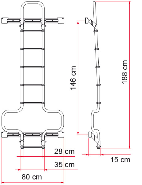 Ø 30mm and 2mm thick tubes in anodized aluminium. Inner width: 28cm. Total step width: 35cm.