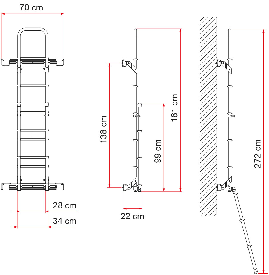 Updated measures in accordance with the European standard UNI EN 131. Non-skid steps.