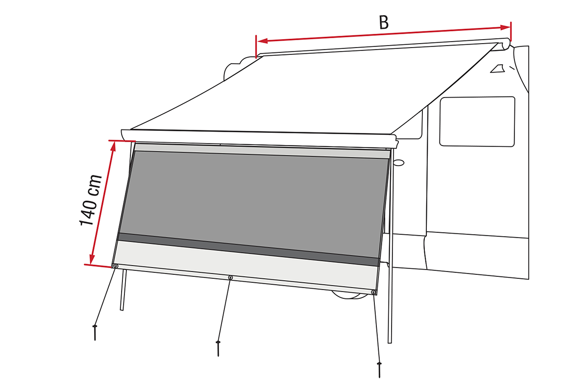 | Minimum awning length B | 250 cm | 300 cm | 340 cm | 40 cm | 450 cm |
