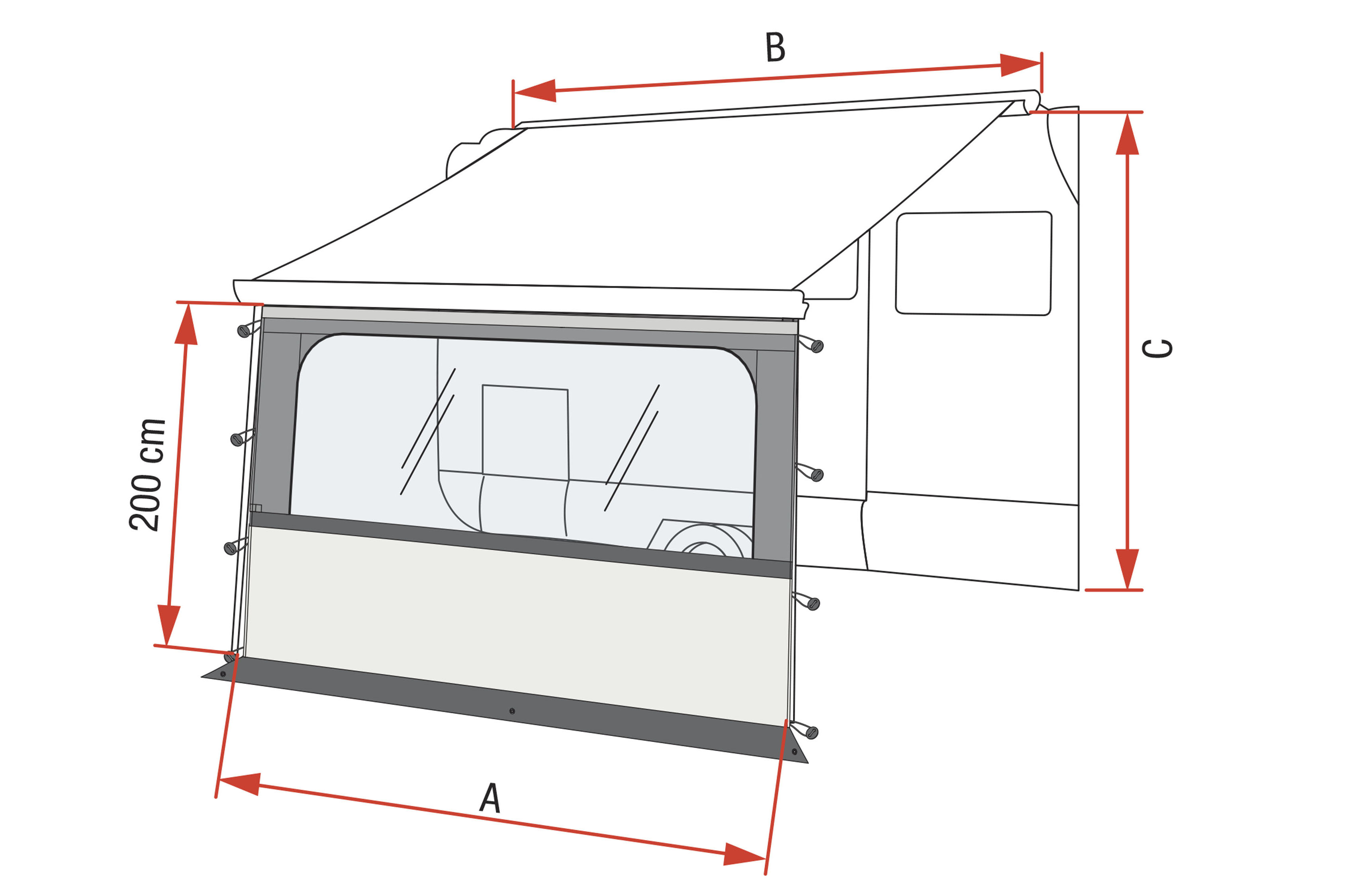 Minimum awning length B 260 cm 300 cm 340 cm 400 cm 450 cm
