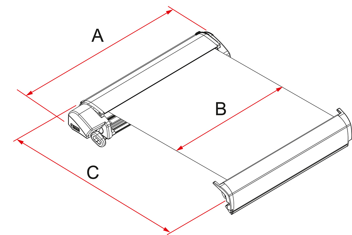 Description Awning length A Canopy length B Extension C Weight Shade surface