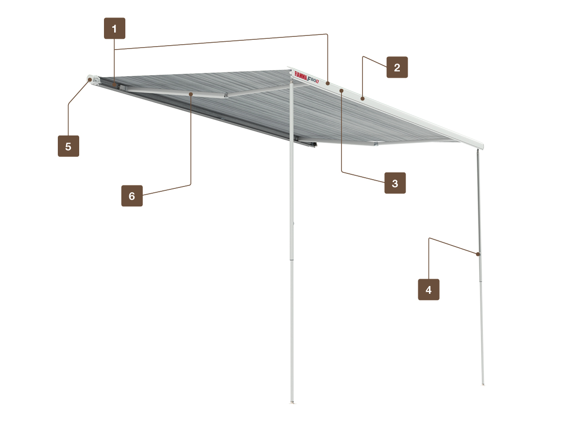[2] Compact section: case and lead bar are more compact but as strong as ever. The awning has improved aerodynamic performance as a result of having a 20% slimmer cross-section than F65s model
